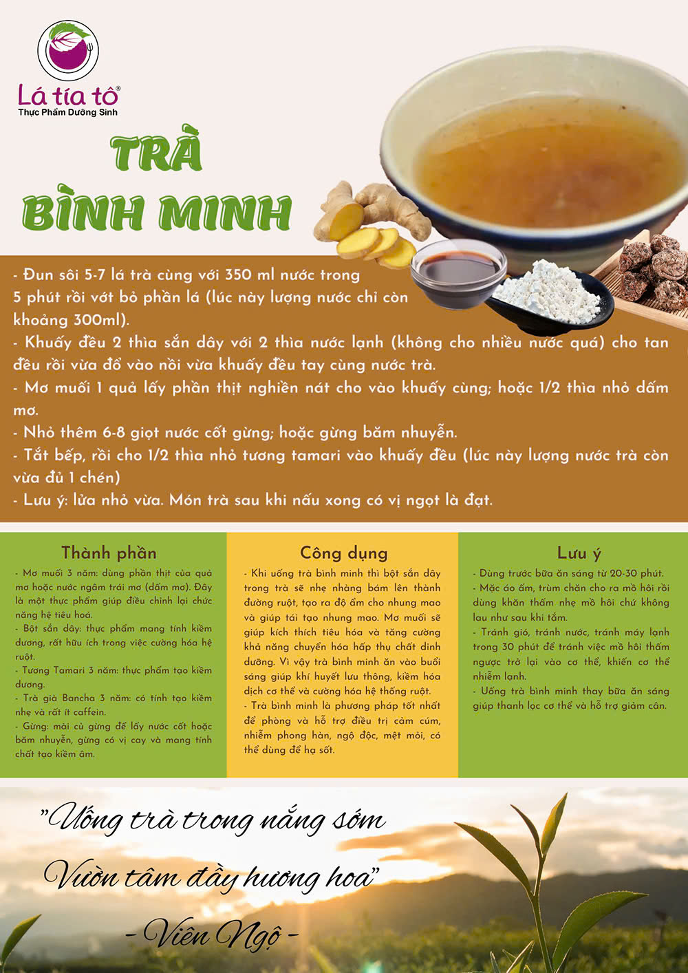 - Tương tamari kết hợp cùng bột sắn dây và mơ muối sẽ tạo ra trà sắn dây dành cho buổi sáng sẽ giúp hệ tiêu hóa hoạt động trơn tru hơn.