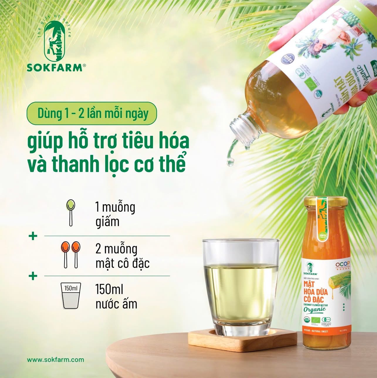 🥤 2 muỗng cà phê mật hoa dừa + 1 muỗng cà phê giấm mật hoa dừa + 150ml nước ấm
